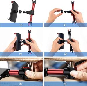 - ✔ 【Entretenimiento perfecto para el asiento trasero】: este soporte para reposacabezas de tableta especialmente diseñado para el reposacabezas del automóvil, permite que su hijo u otros pasajeros del asiento trasero entretengan mientras conducen largas distancias. Ideal para pasajeros traseros que miran películas, leen libros electrónicos, juegan juegos, etc. durante los viajes por carretera.